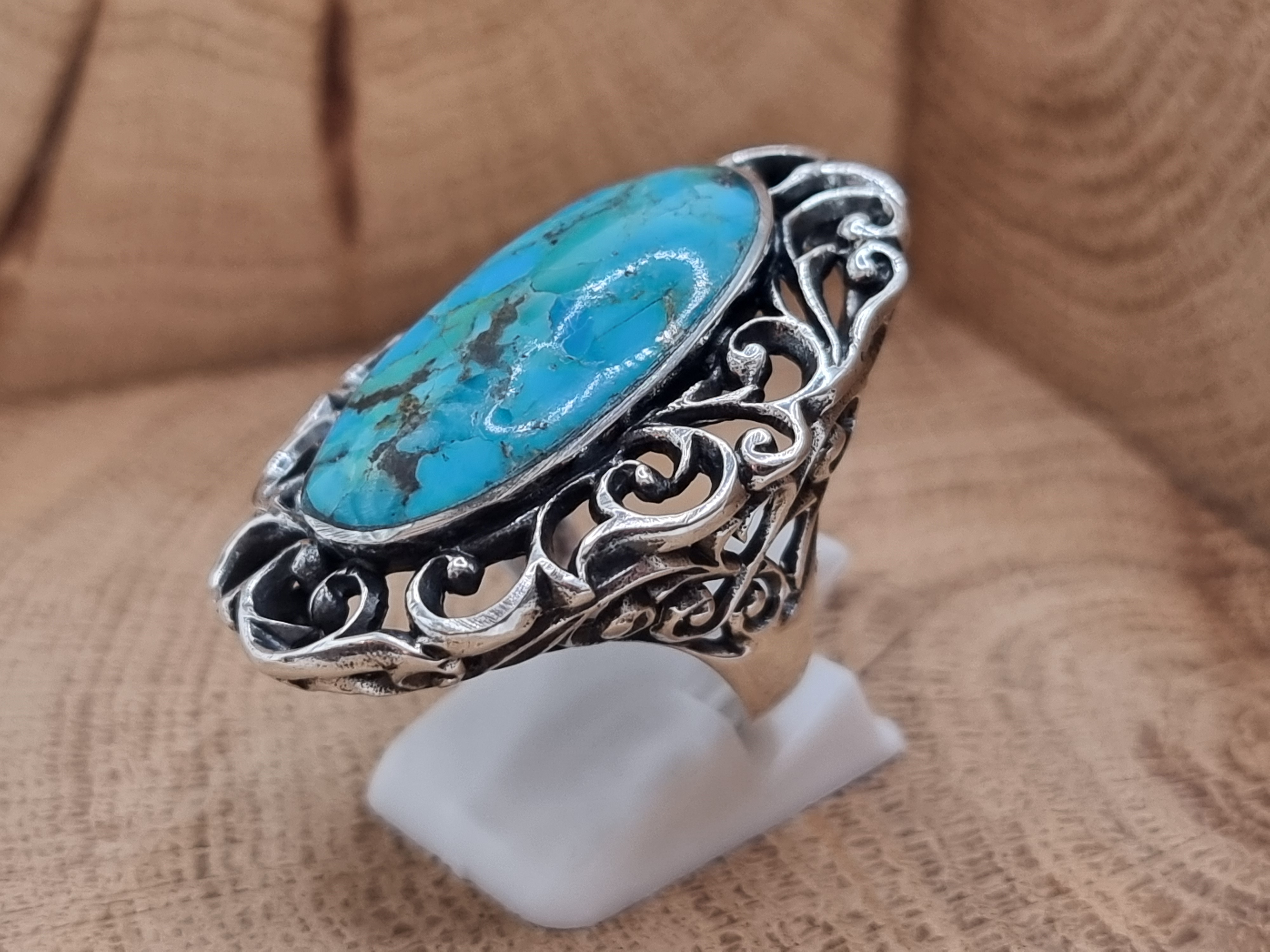 Echt zilveren ring met paarse Dahlia copper turkoois.