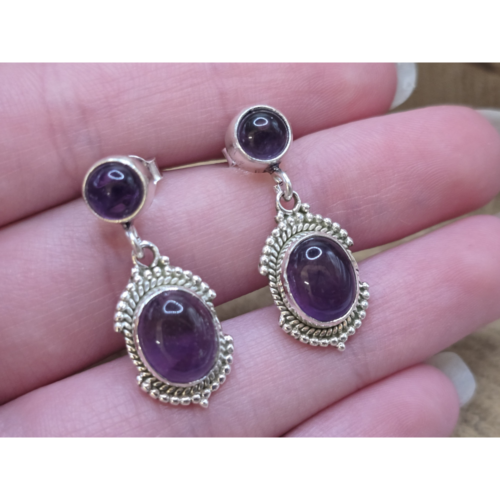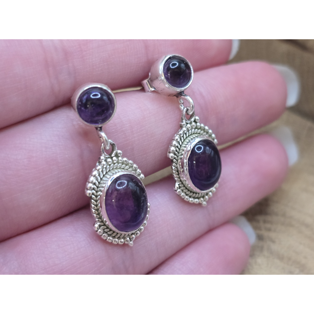 Echt zilveren Amethist oorbel stekers hangend