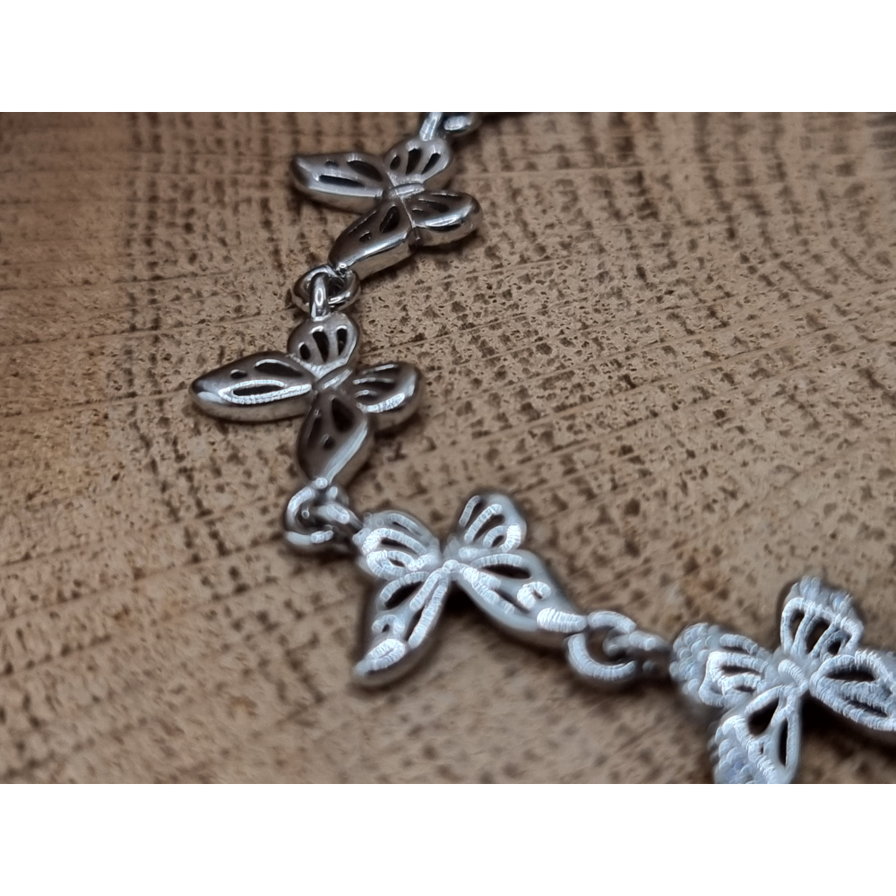 Klassieke vlinder armband de middelste 4 vlinders hebben strass steentjes in de vleugels.