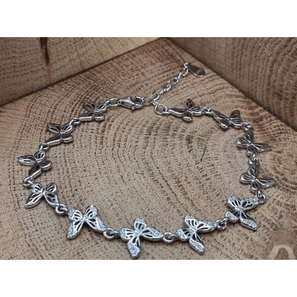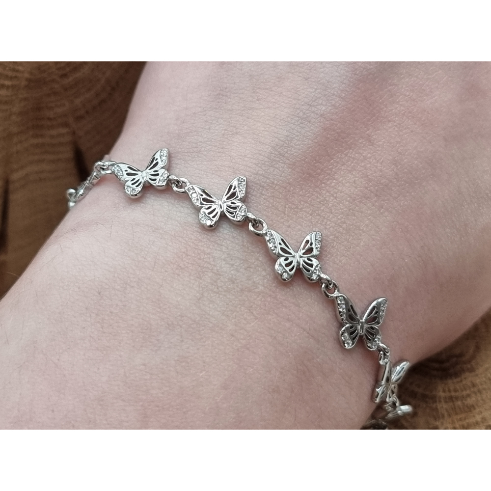 Echt zilveren armband vlinders met strass steentjes