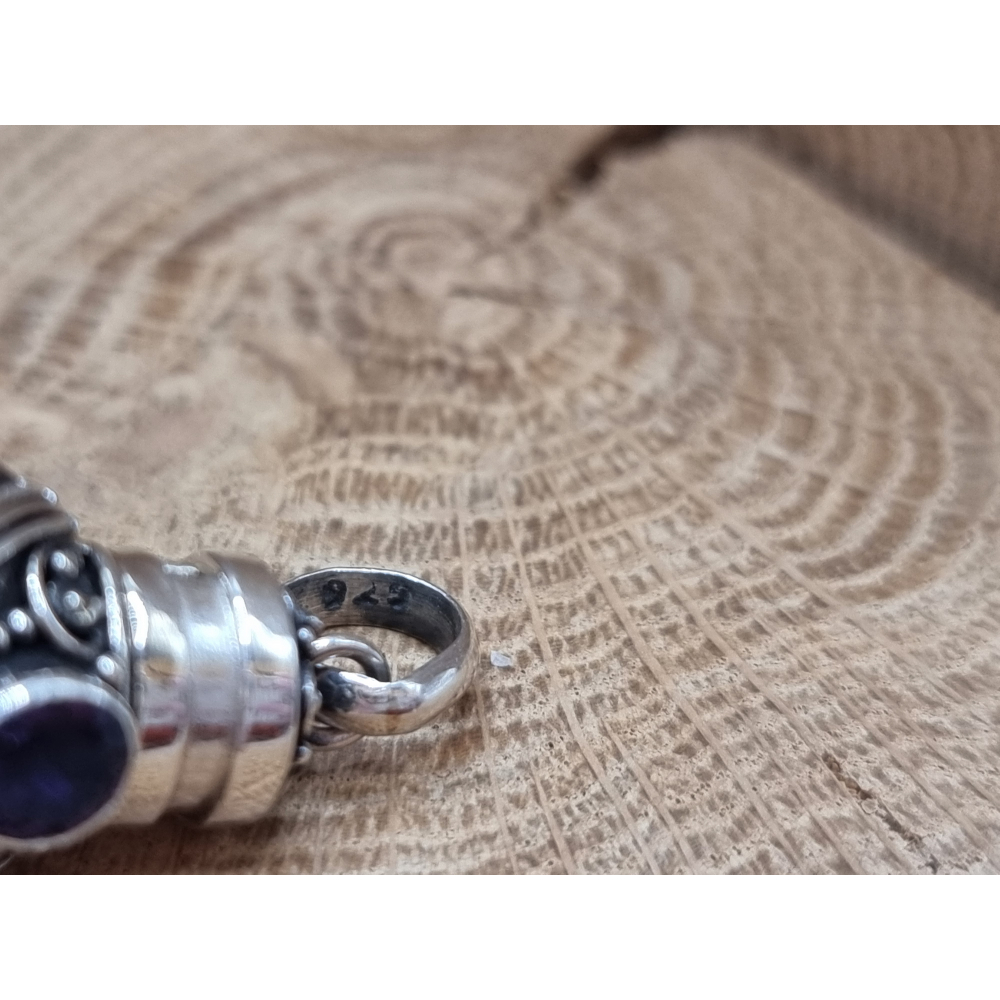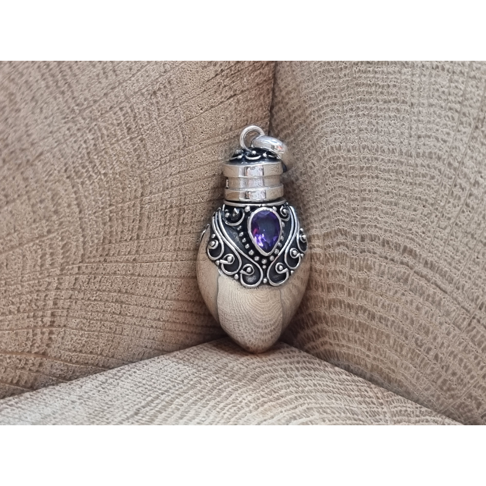 Echt zilveren as hanger/ kruikje / flesje. Met amethist