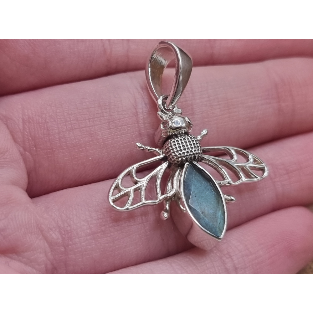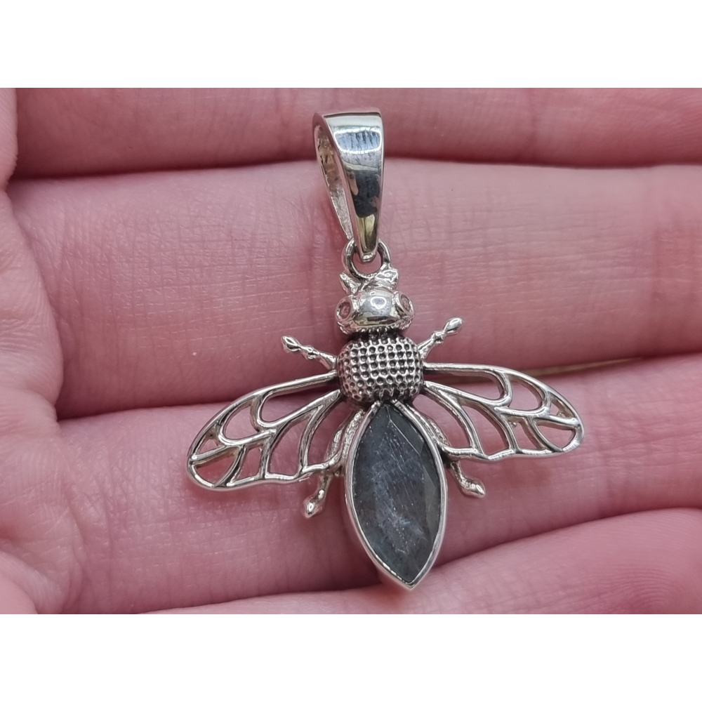 Echt zilveren Bij met labradoriet.