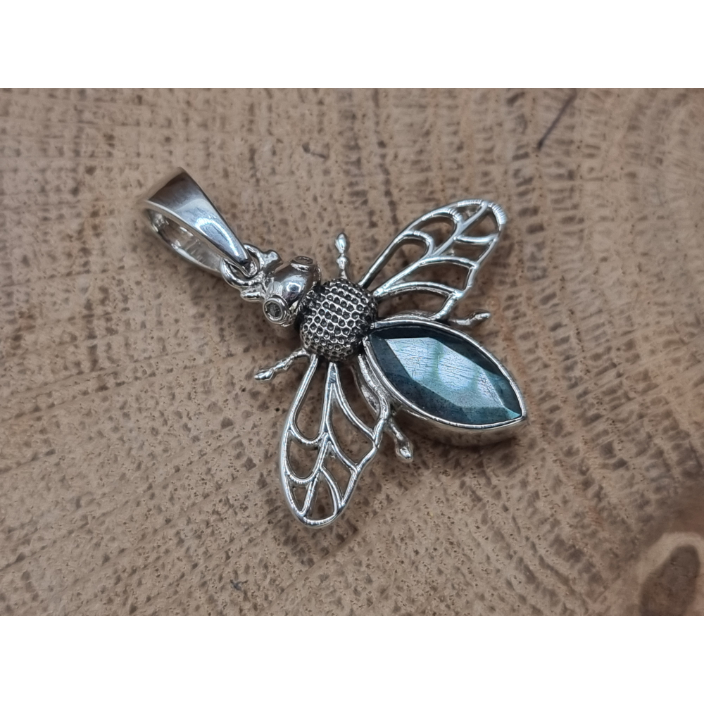 Prachtige Bij hanger met labradoriet.