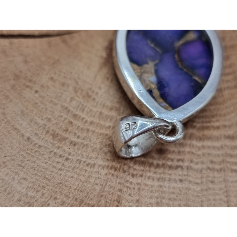 Prachtige echt zilvere paarse Dahlia copper turkoois hanger.