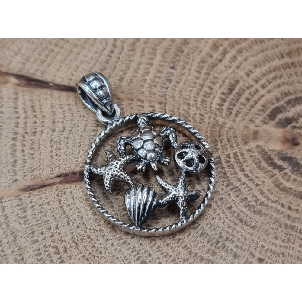 Prachtige echt zilveren hanger met schelpen en schildpad.