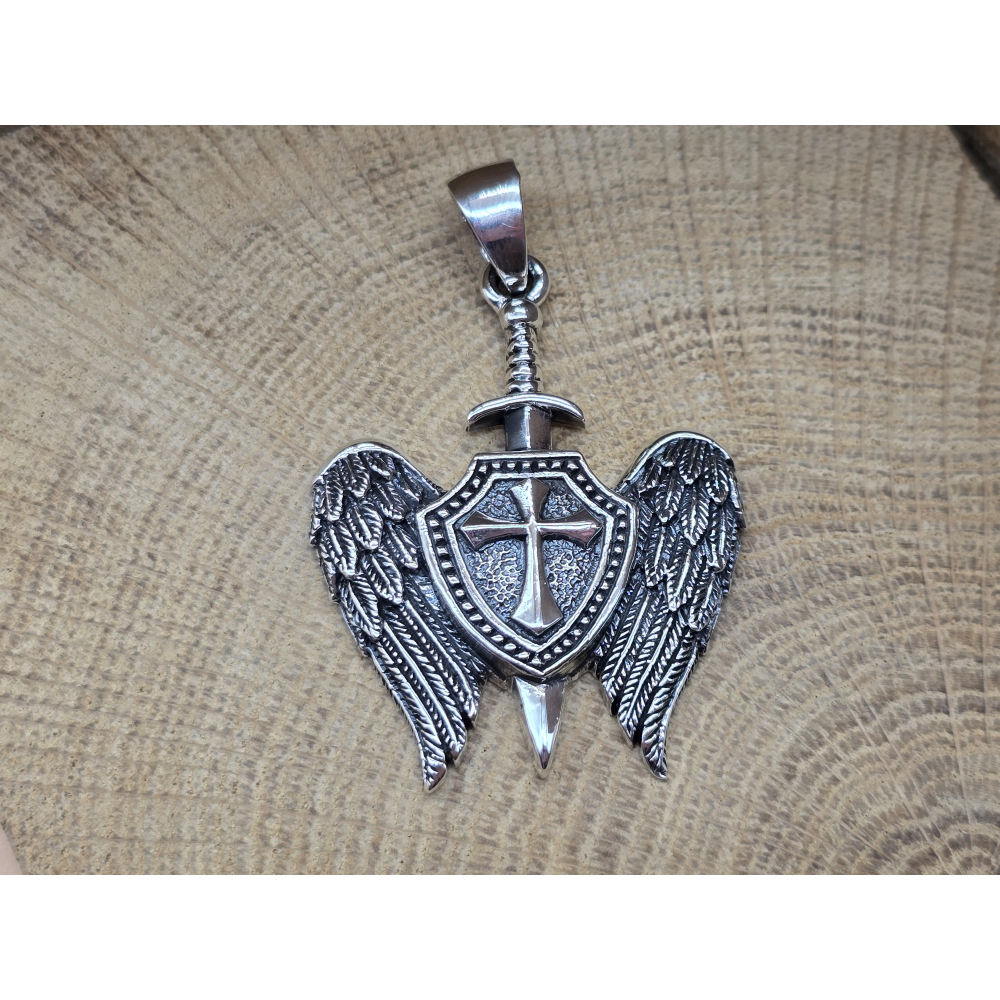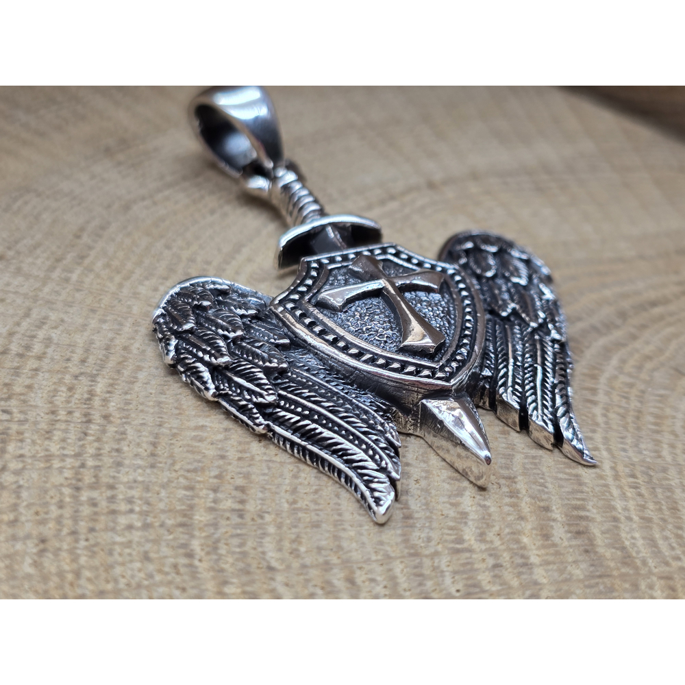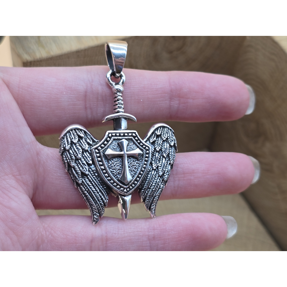 Prachtige echt zilveren hanger van het symbol van aartsengel Michaël schildhanger.