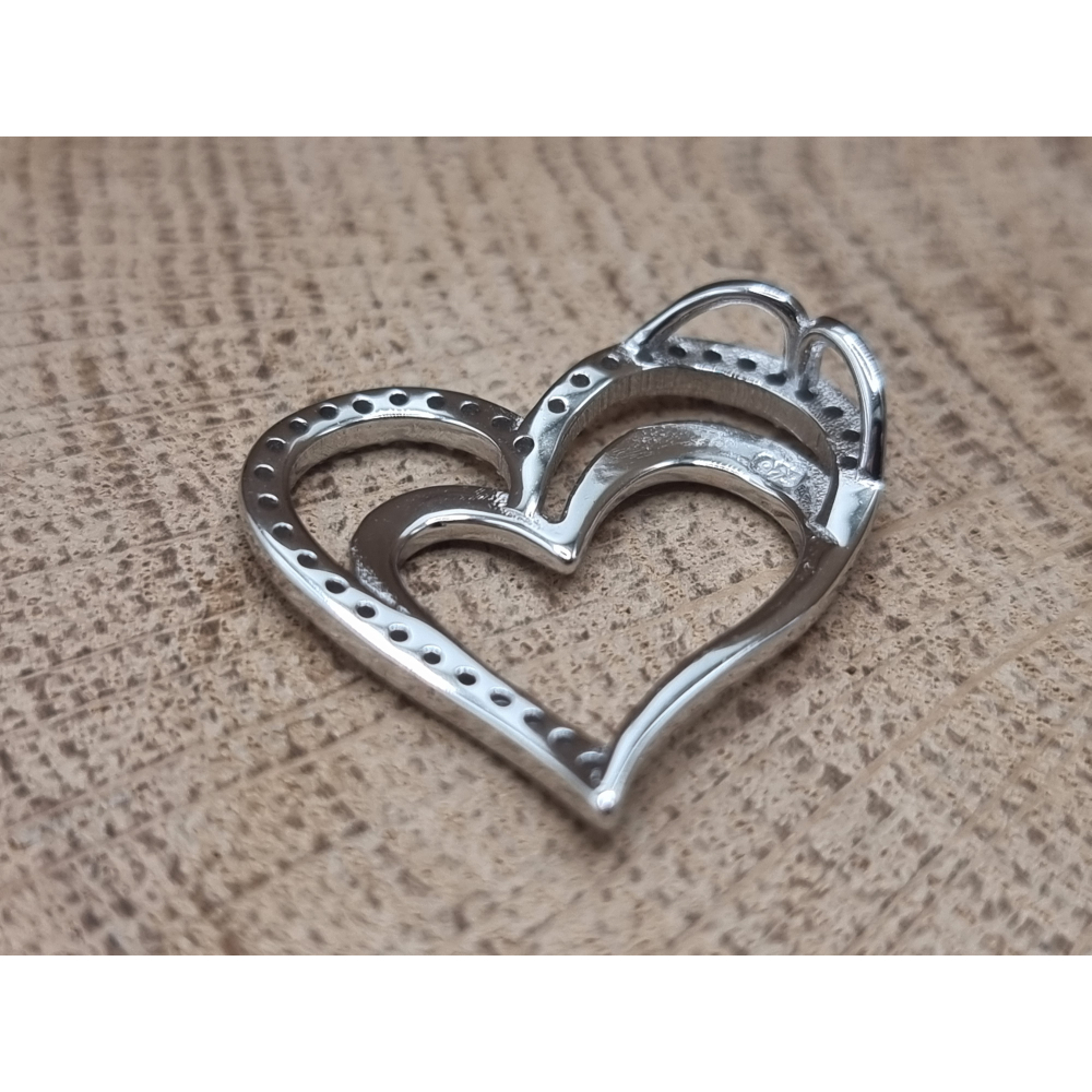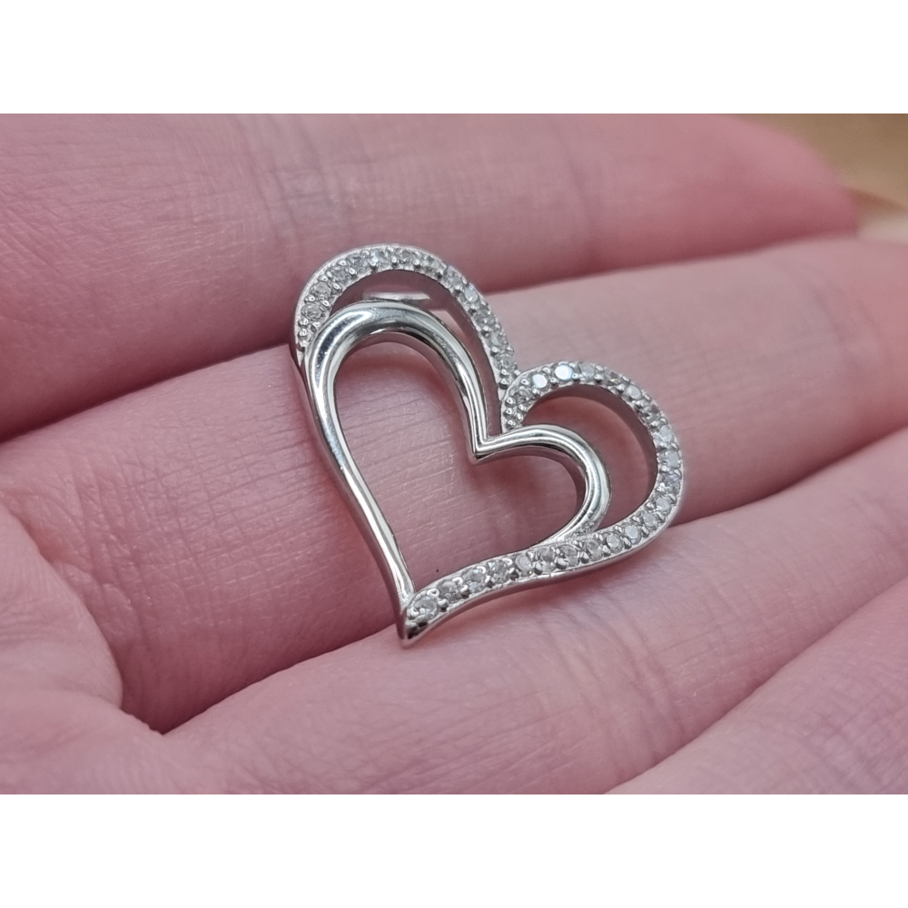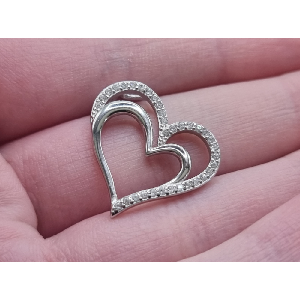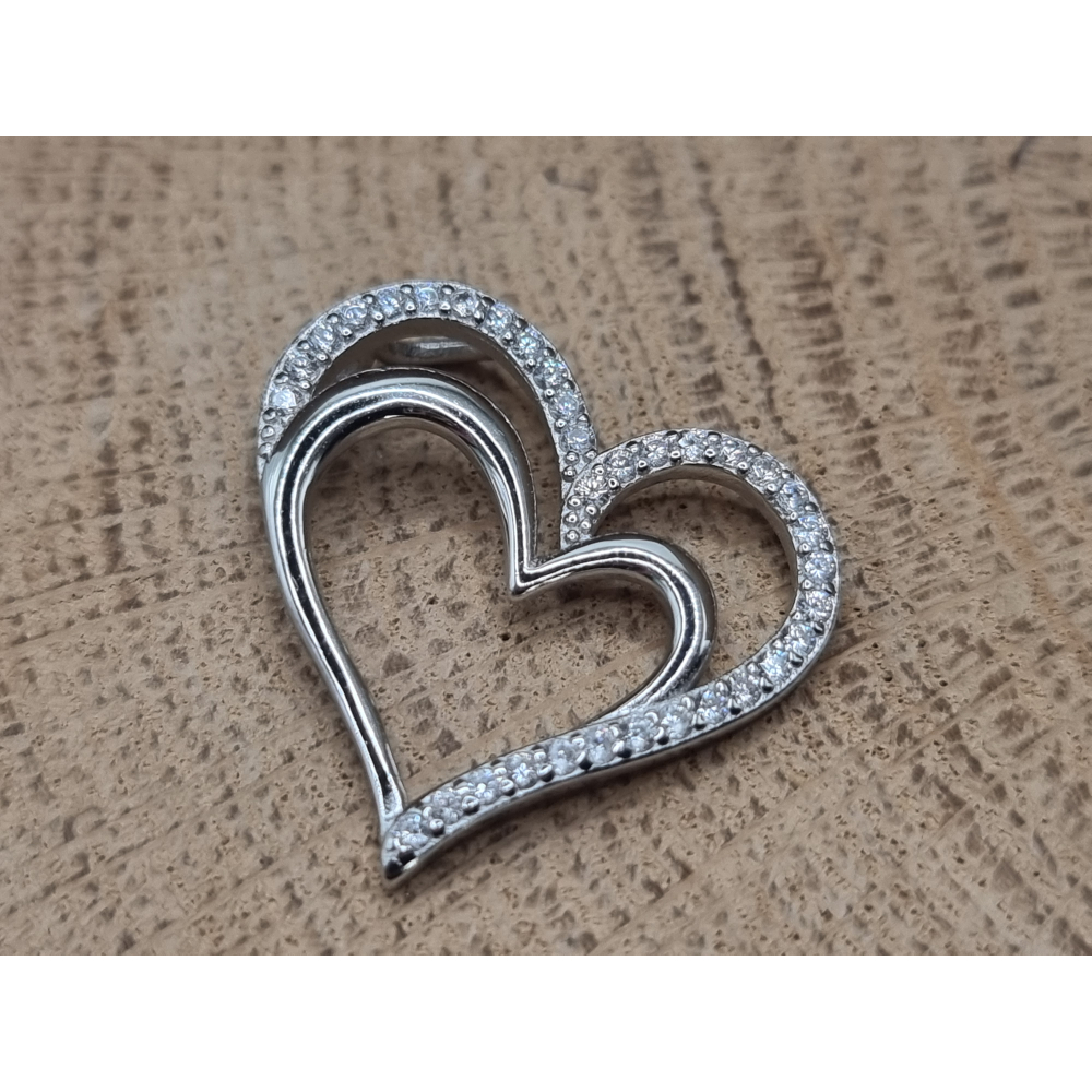 Echt zilveren hart hanger met strass steentjes.