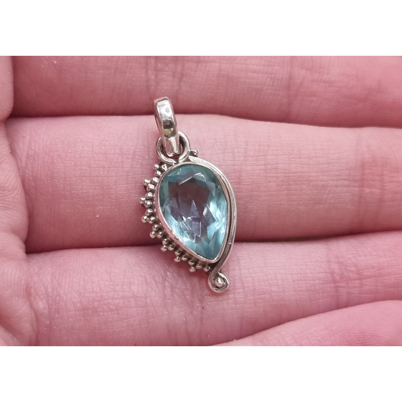 Prachtige echt zilveren topaas hanger druppel vorm.