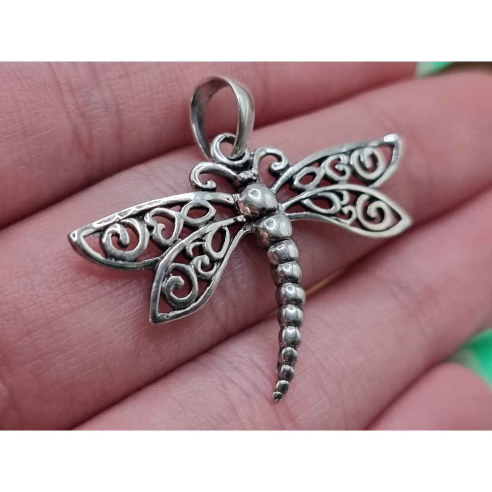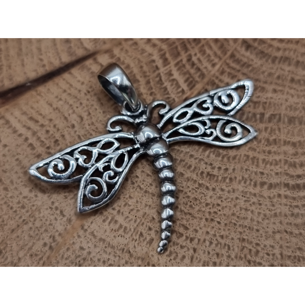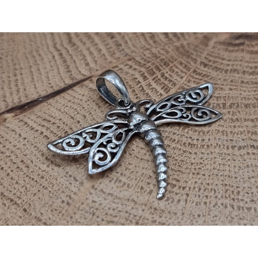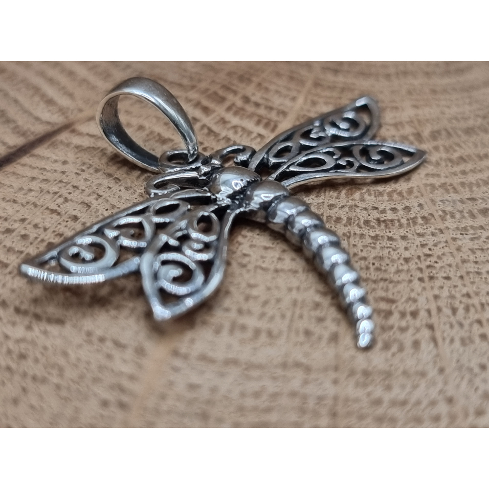 Echt zilveren libel hanger.