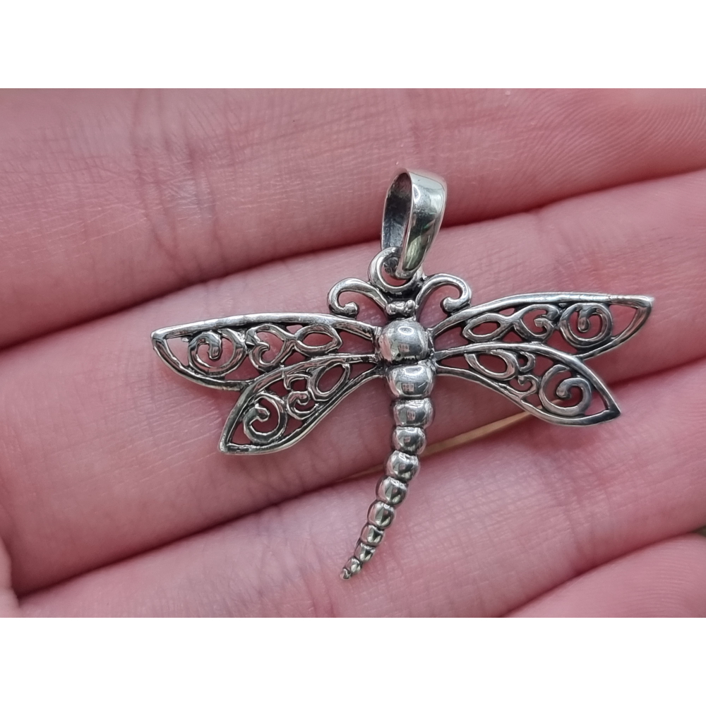 Prachtige echt zilveren libel hanger.