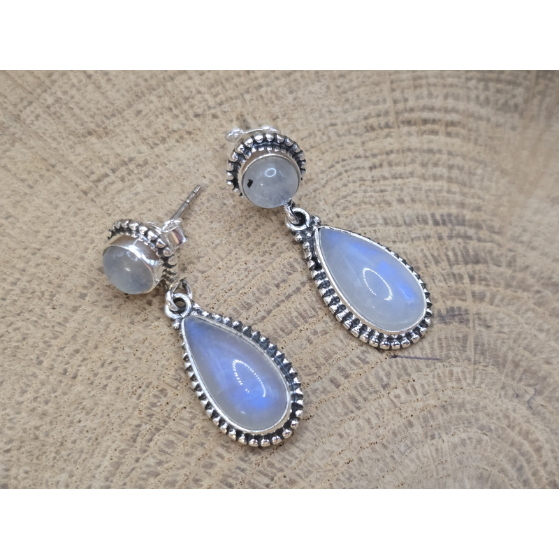 Prachtige echt zilveren oorbellen stekers met Maansteen hangers druppel vorm.