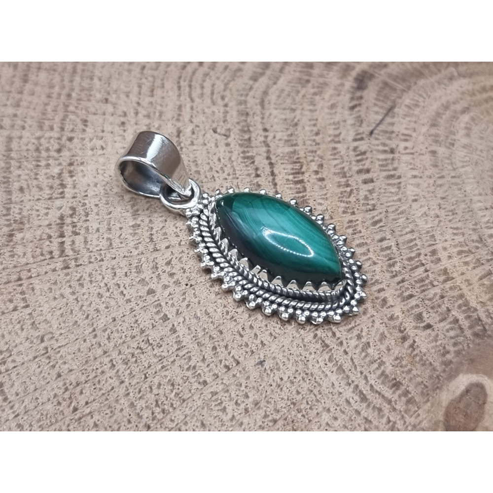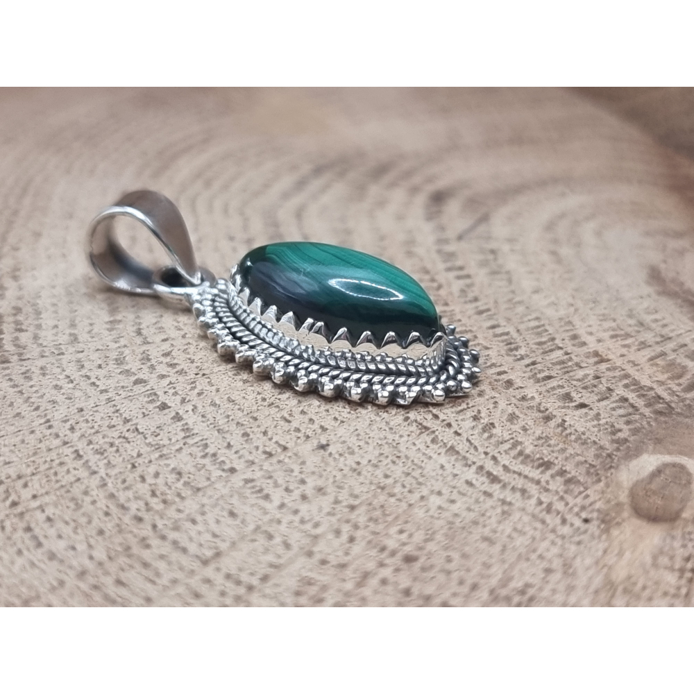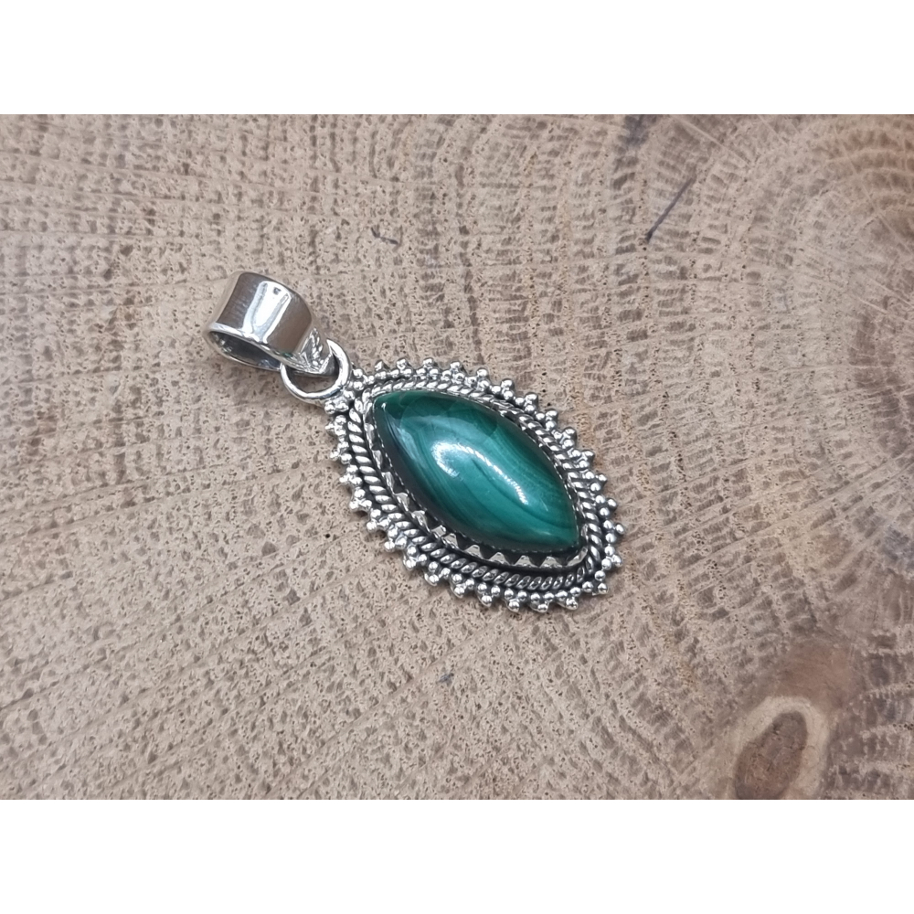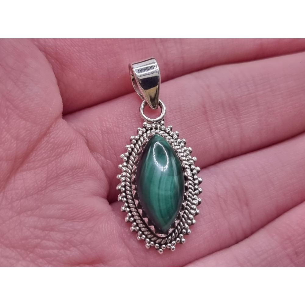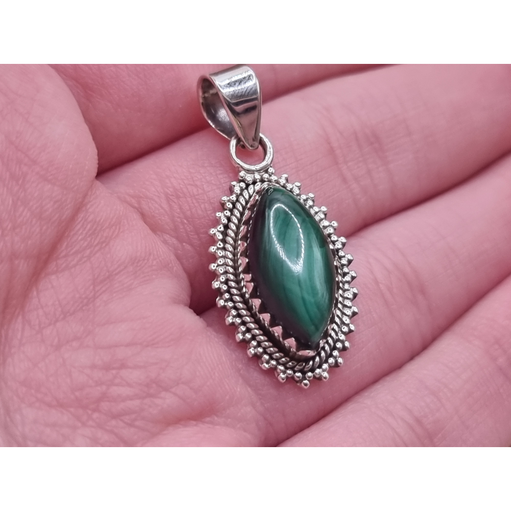 prachtige malachiet hanger echt zilver.