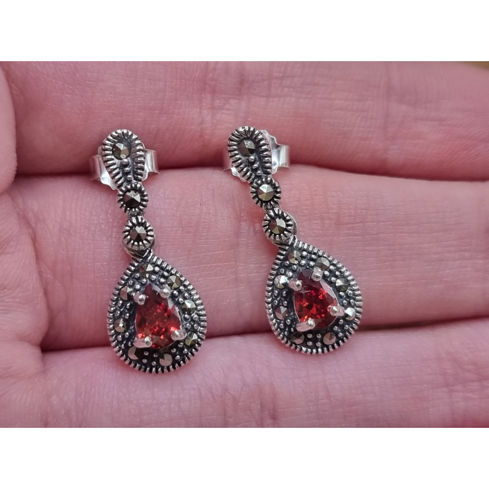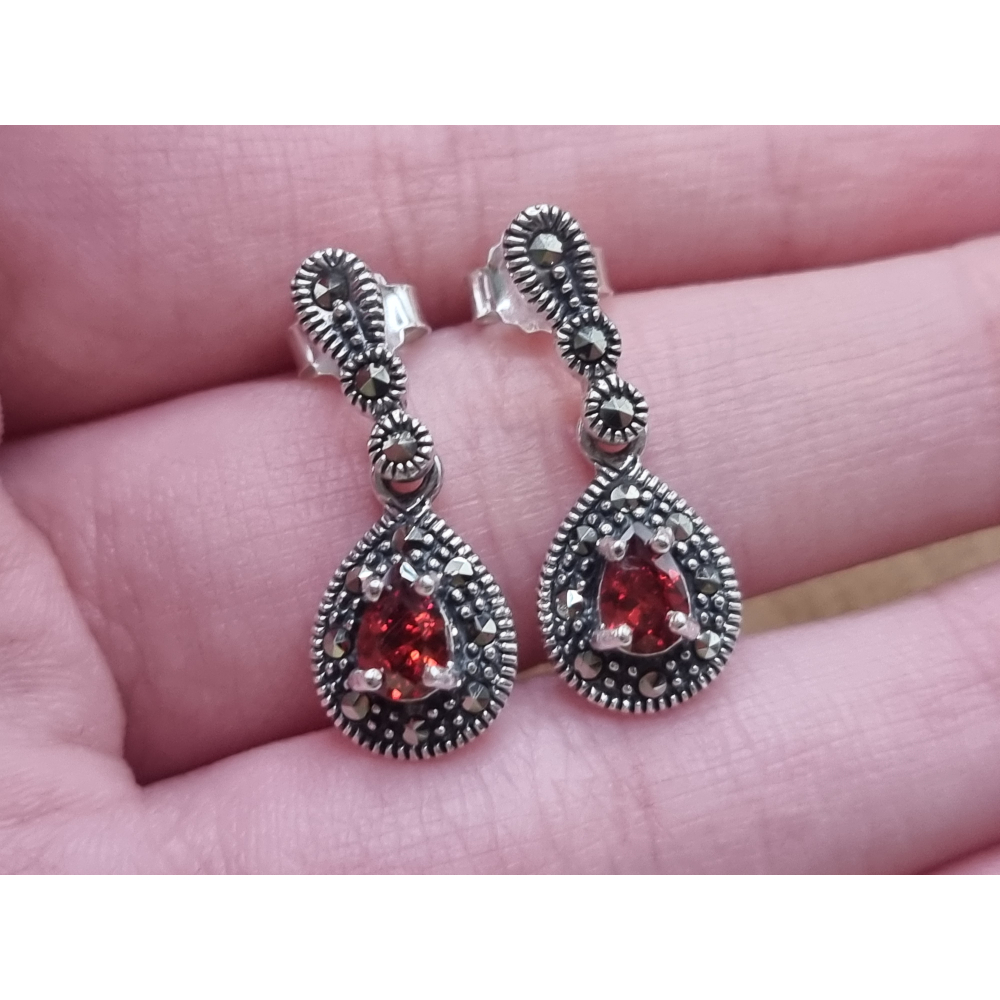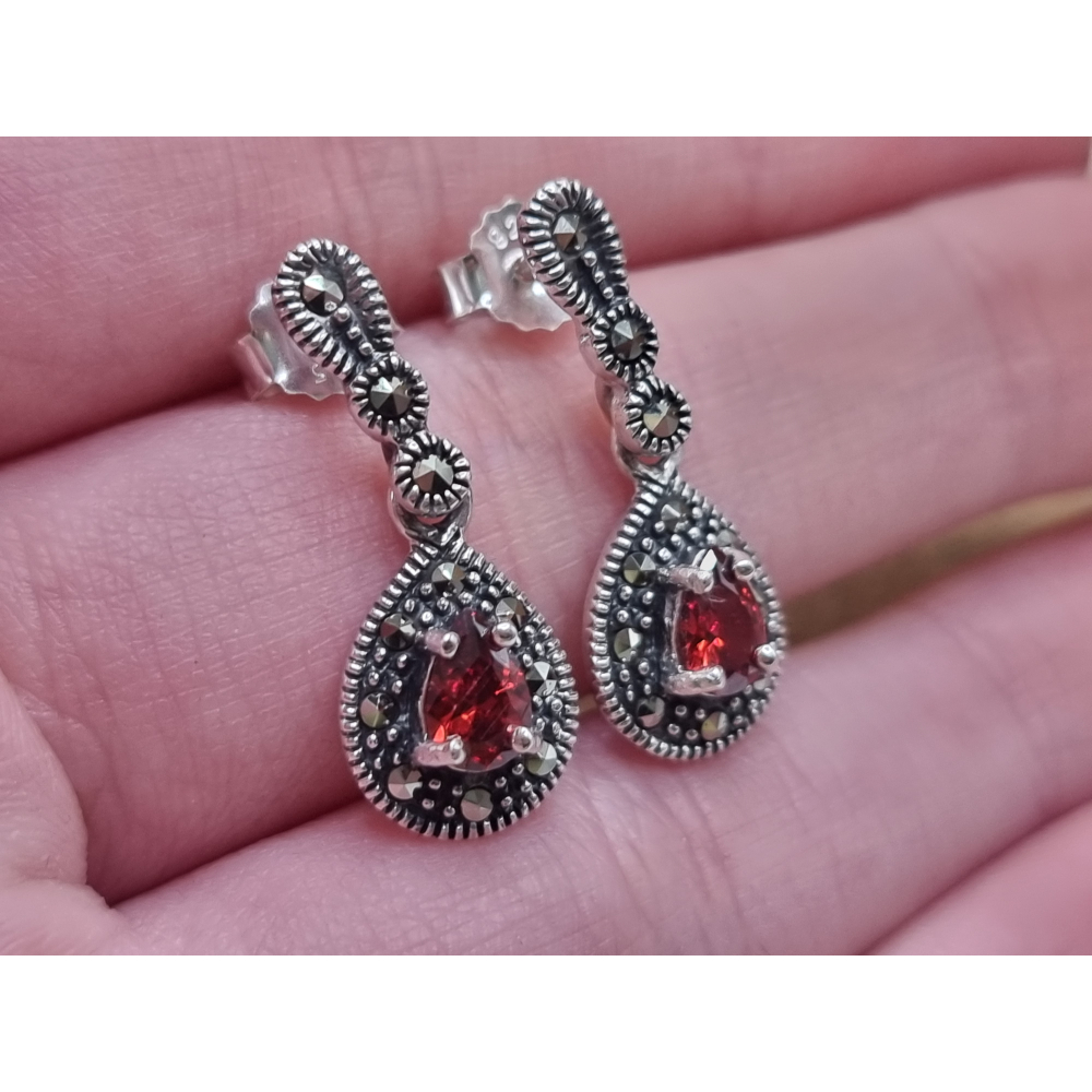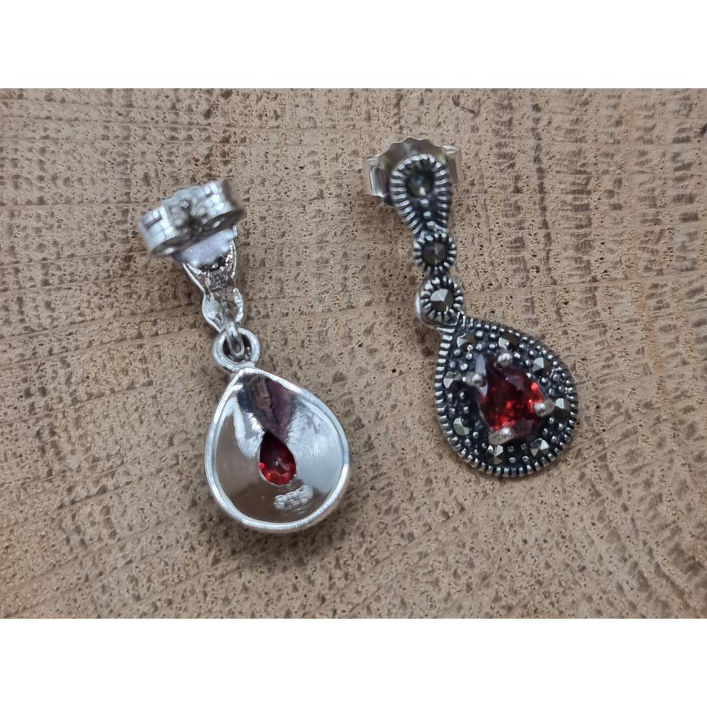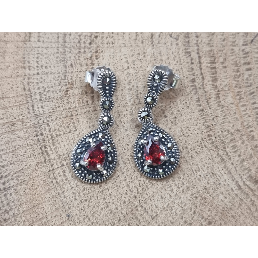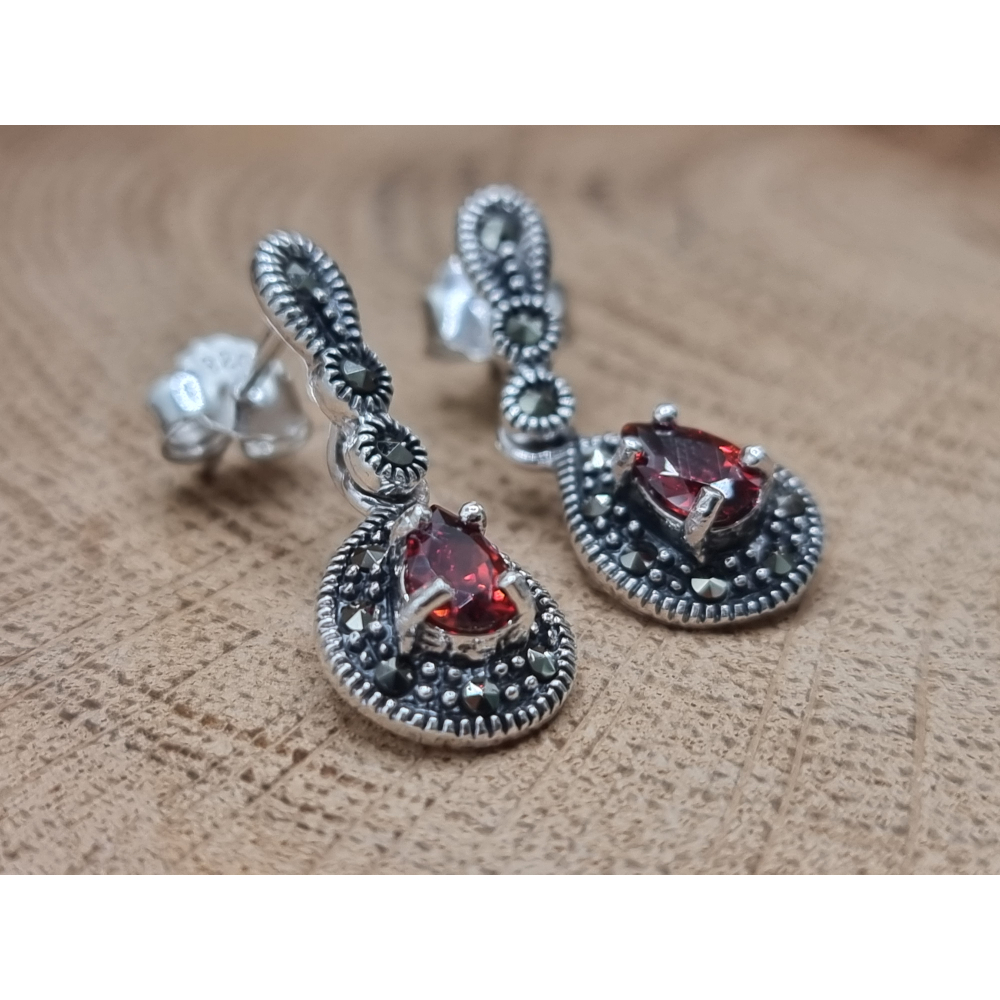 echt-zilveren-oorbel-hanger-met-robijn-en-marcasiet