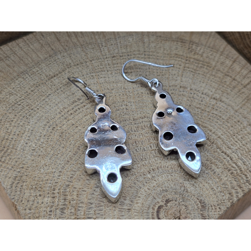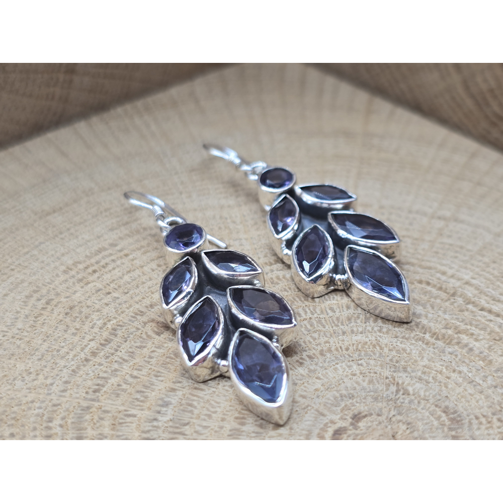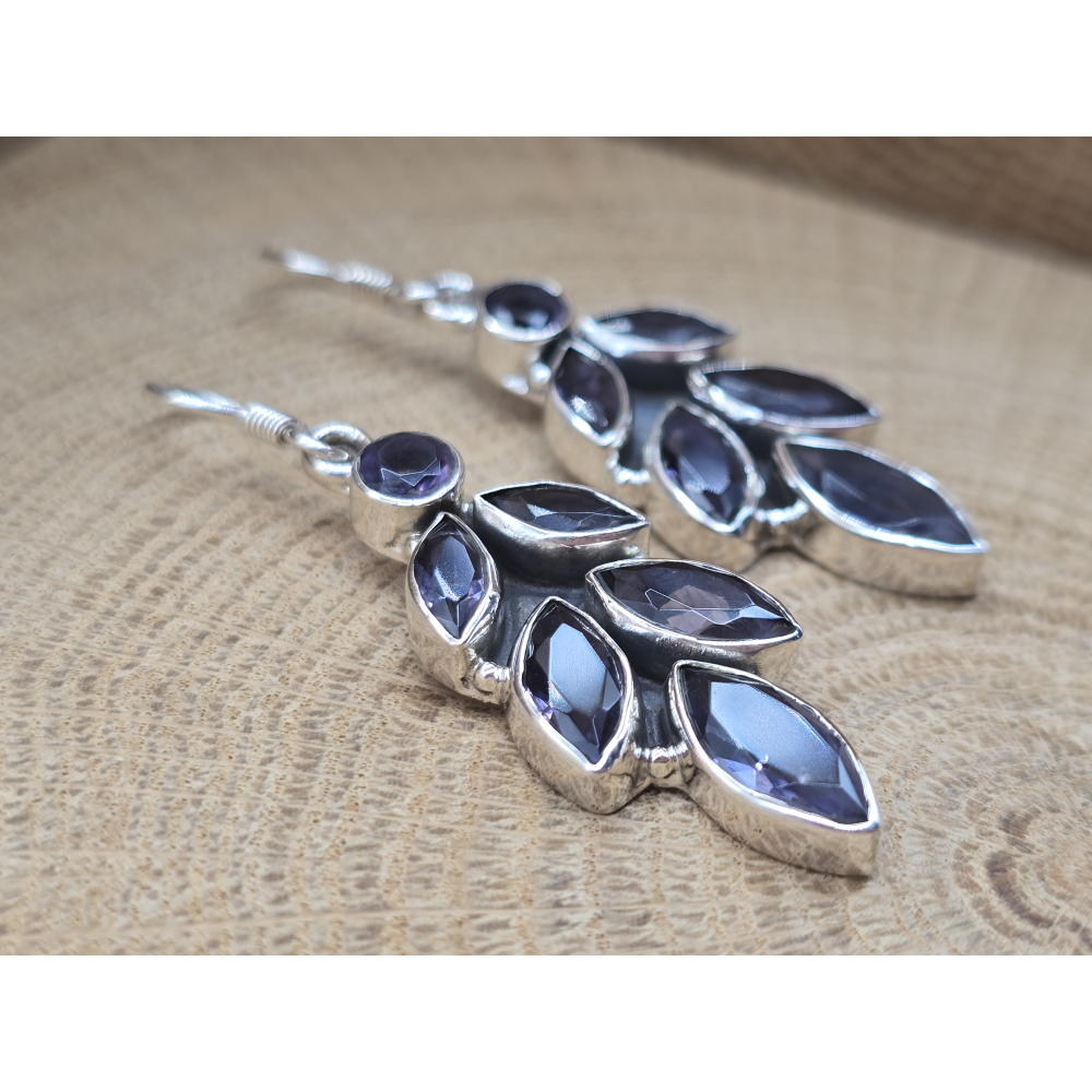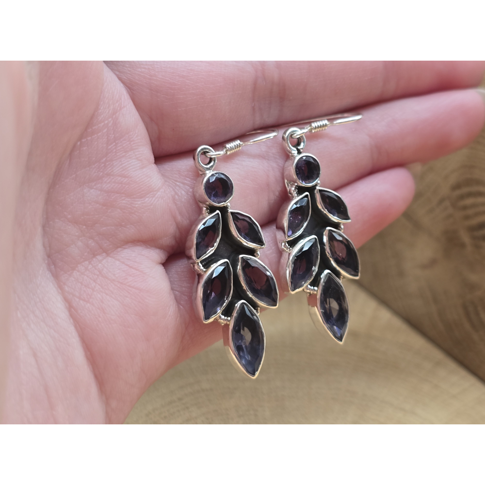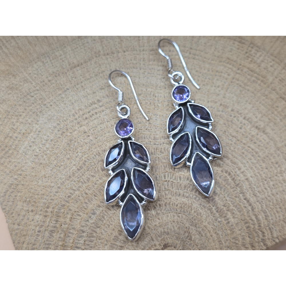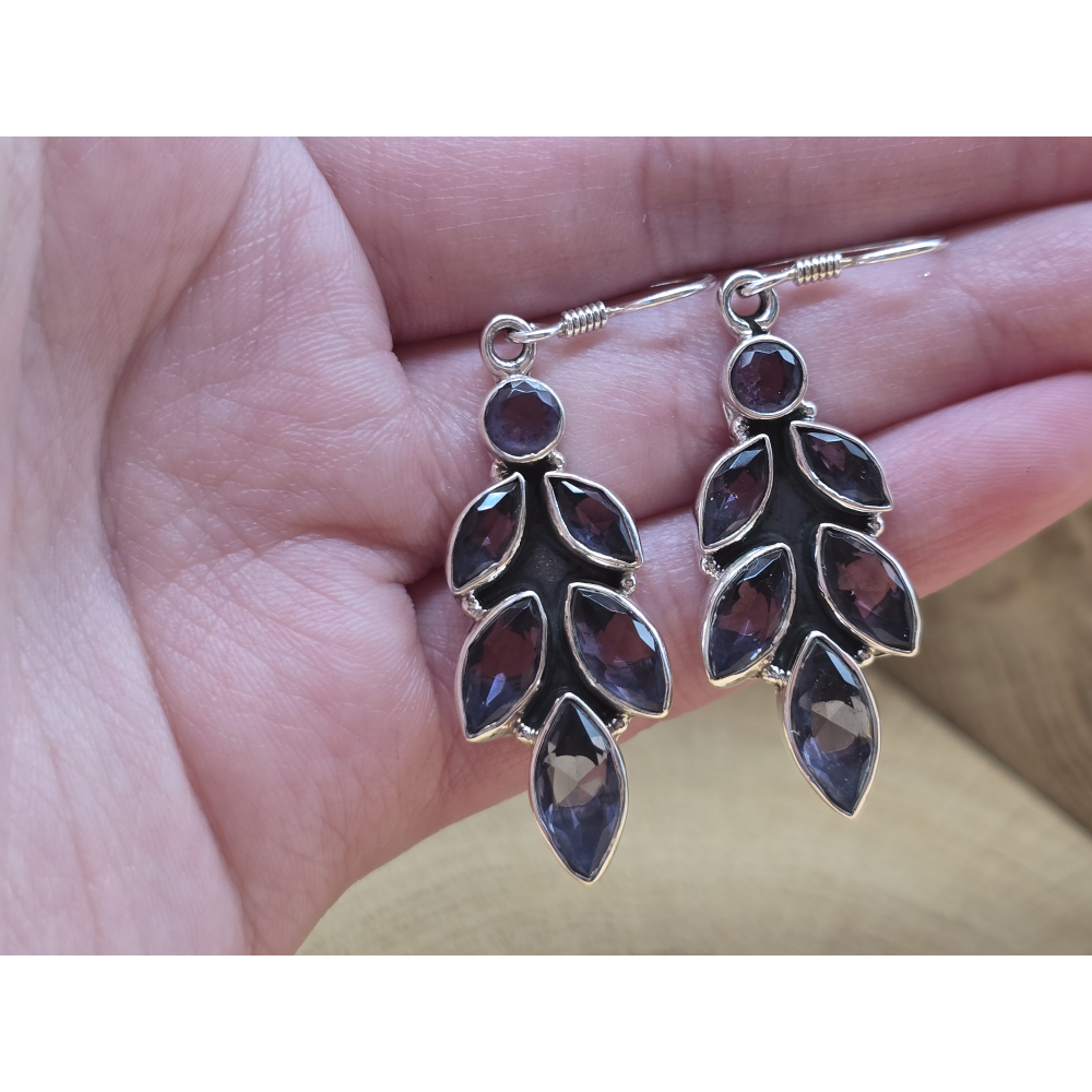 Prachtige echt zilveren oorbel hangers met amethist in blad vorm.