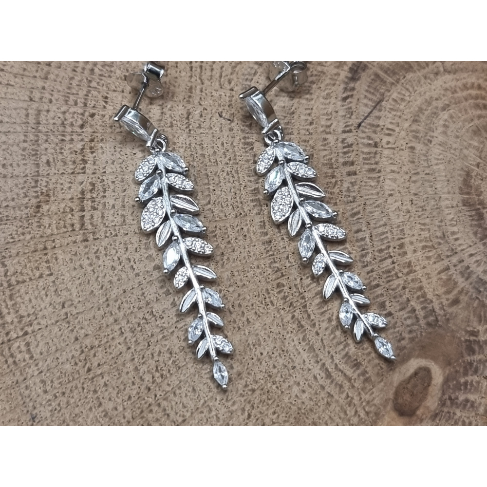 Echt zilveren oorbel hangers blaadjes met strass