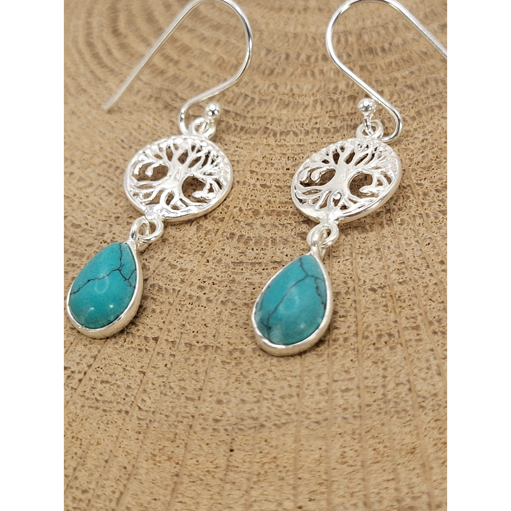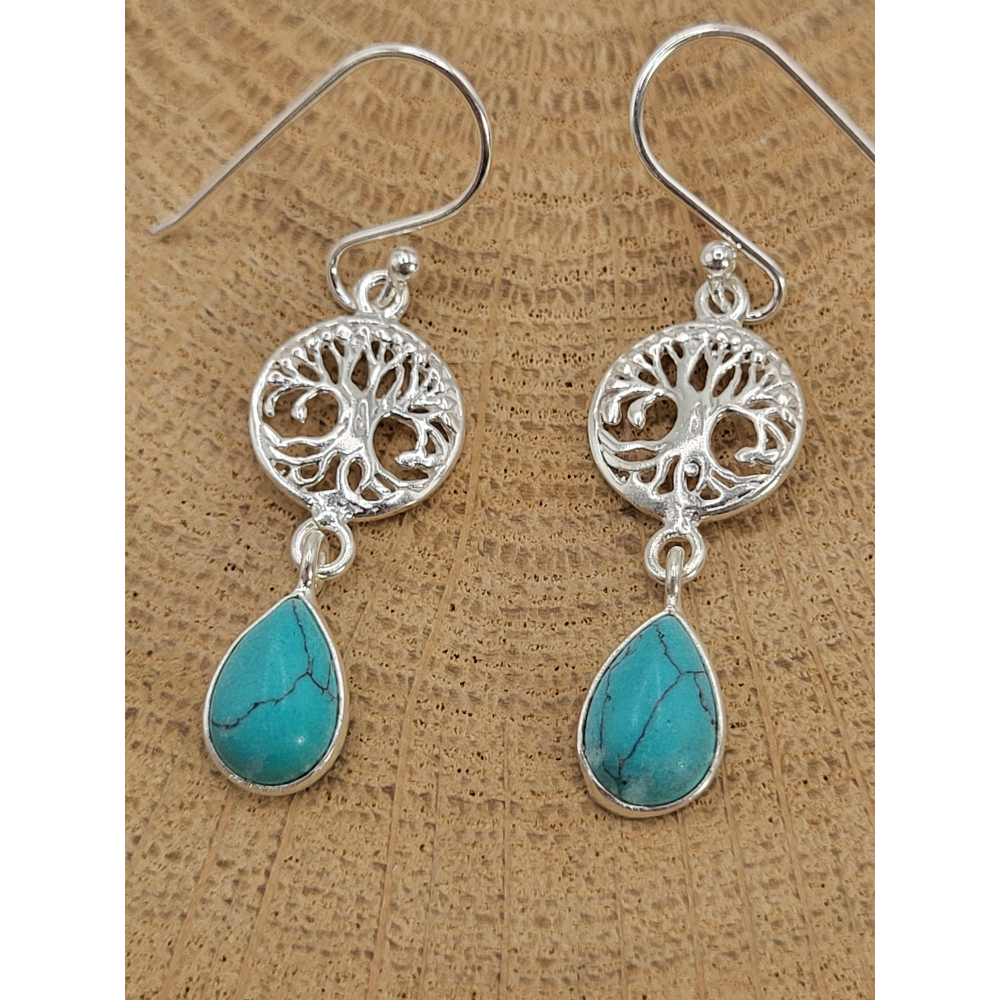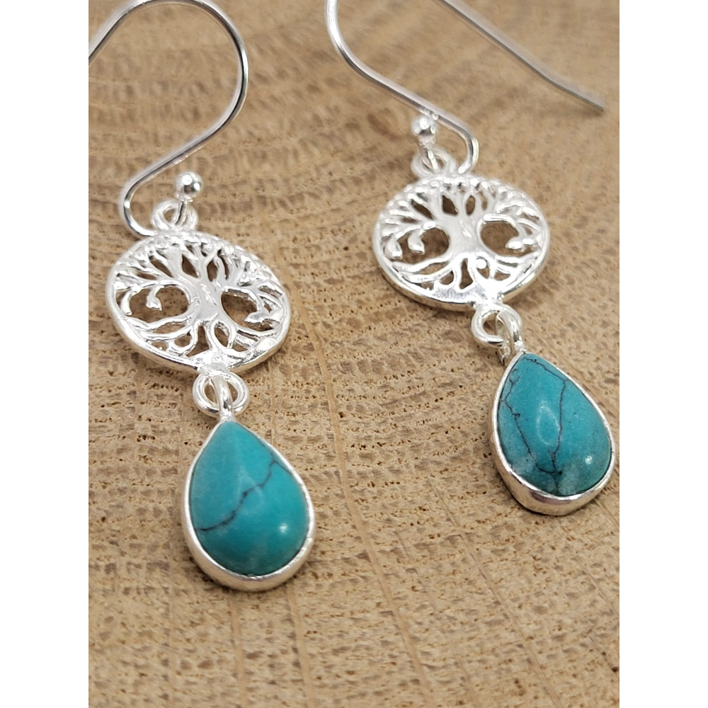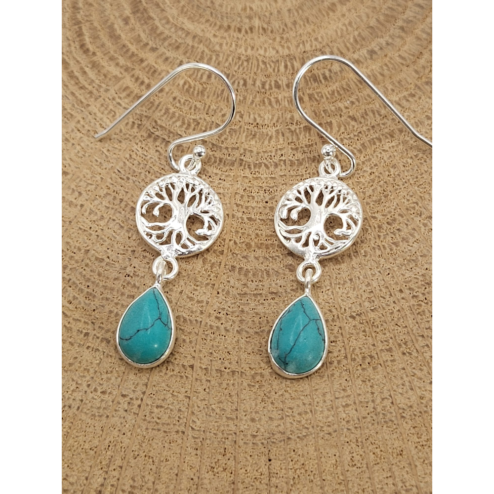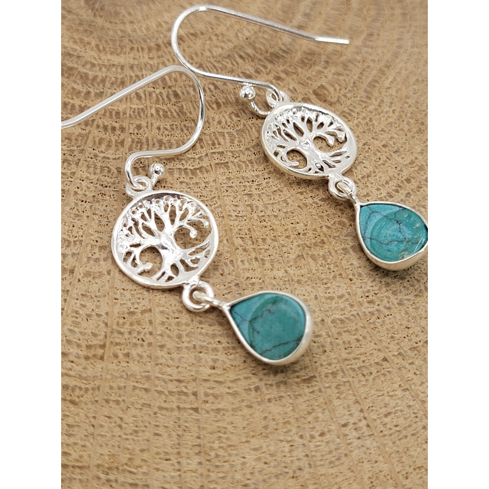 Echt zilveren oorbel met Torkoois Levensboom