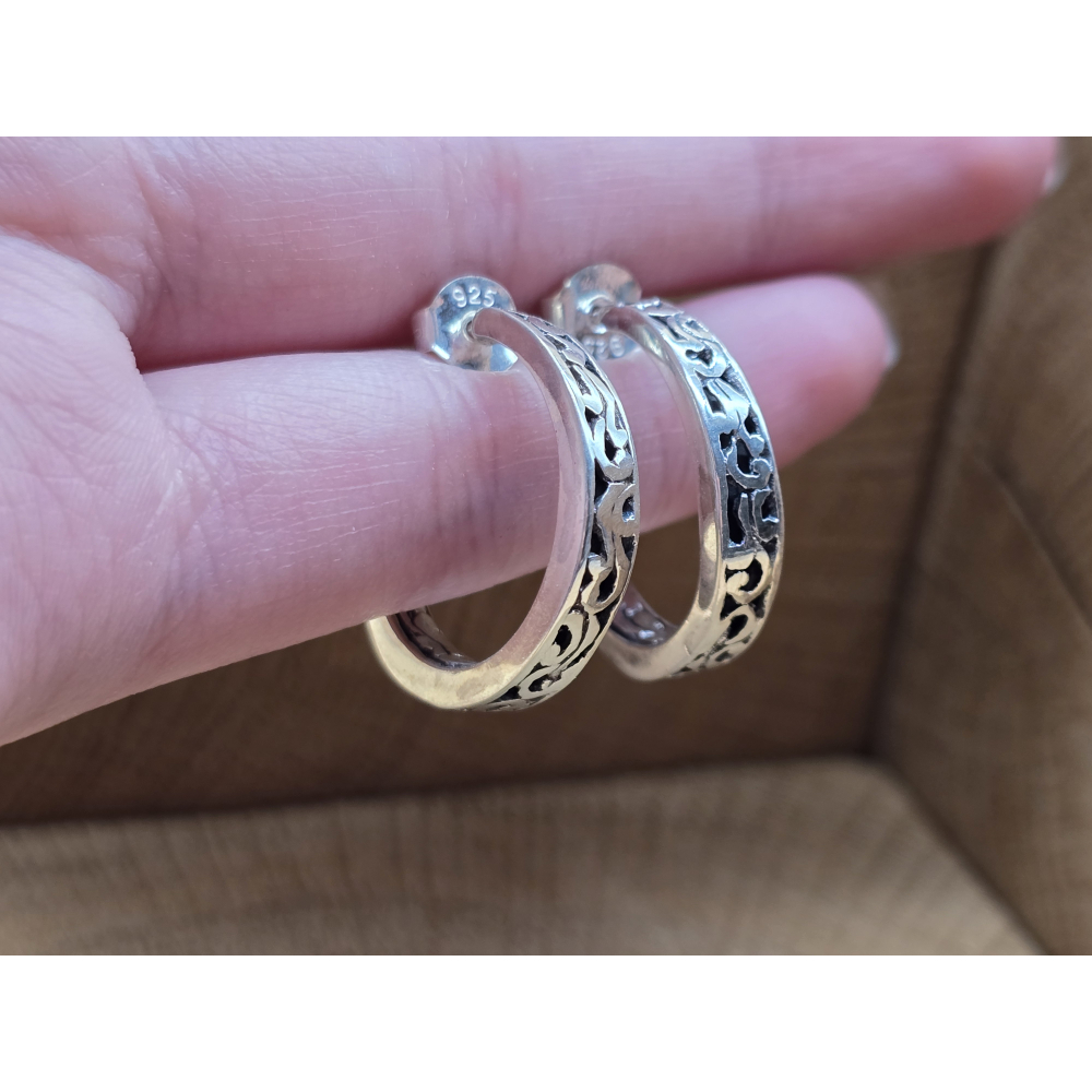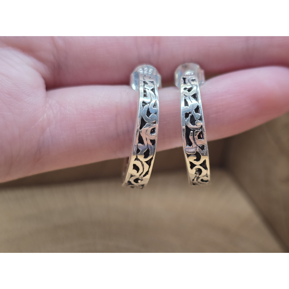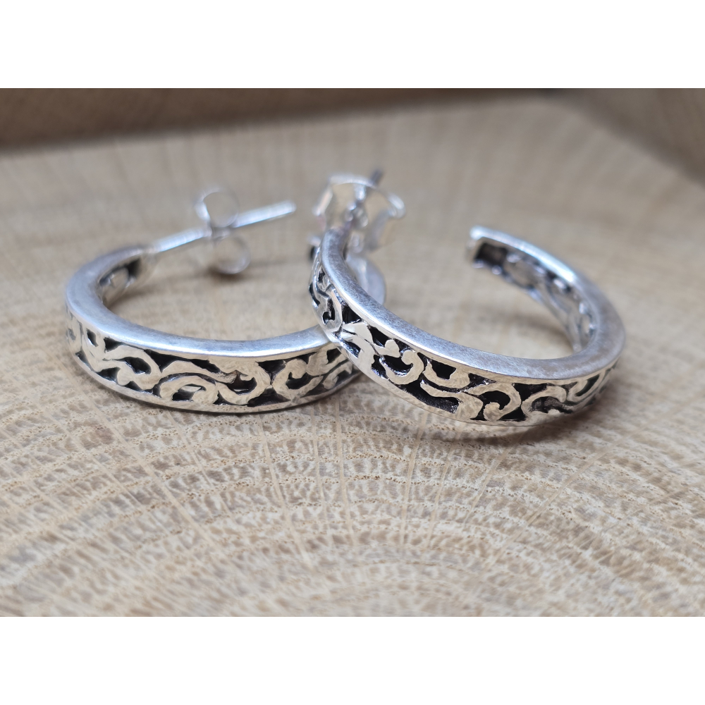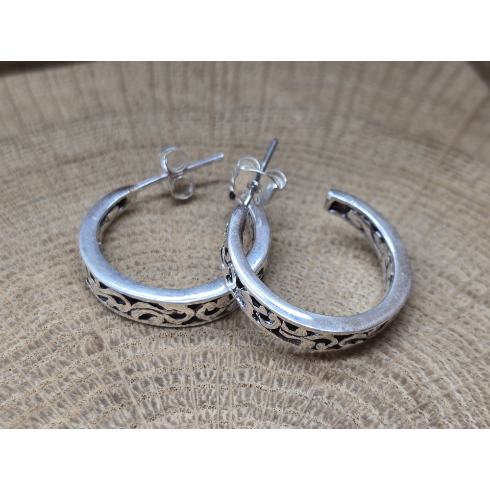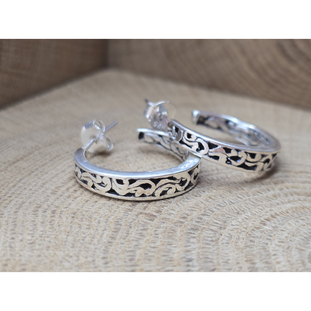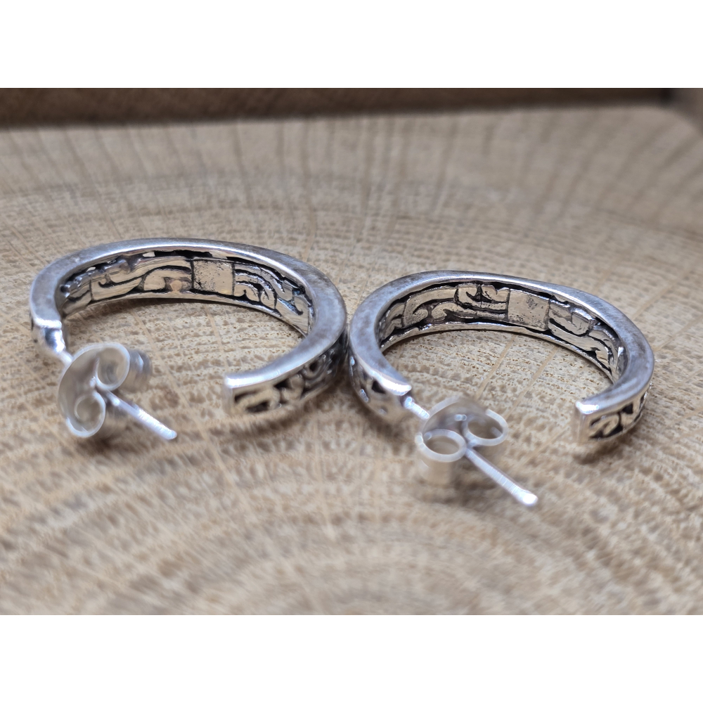 Prachtige bewerkte echt zilveren oorbel stekers.
