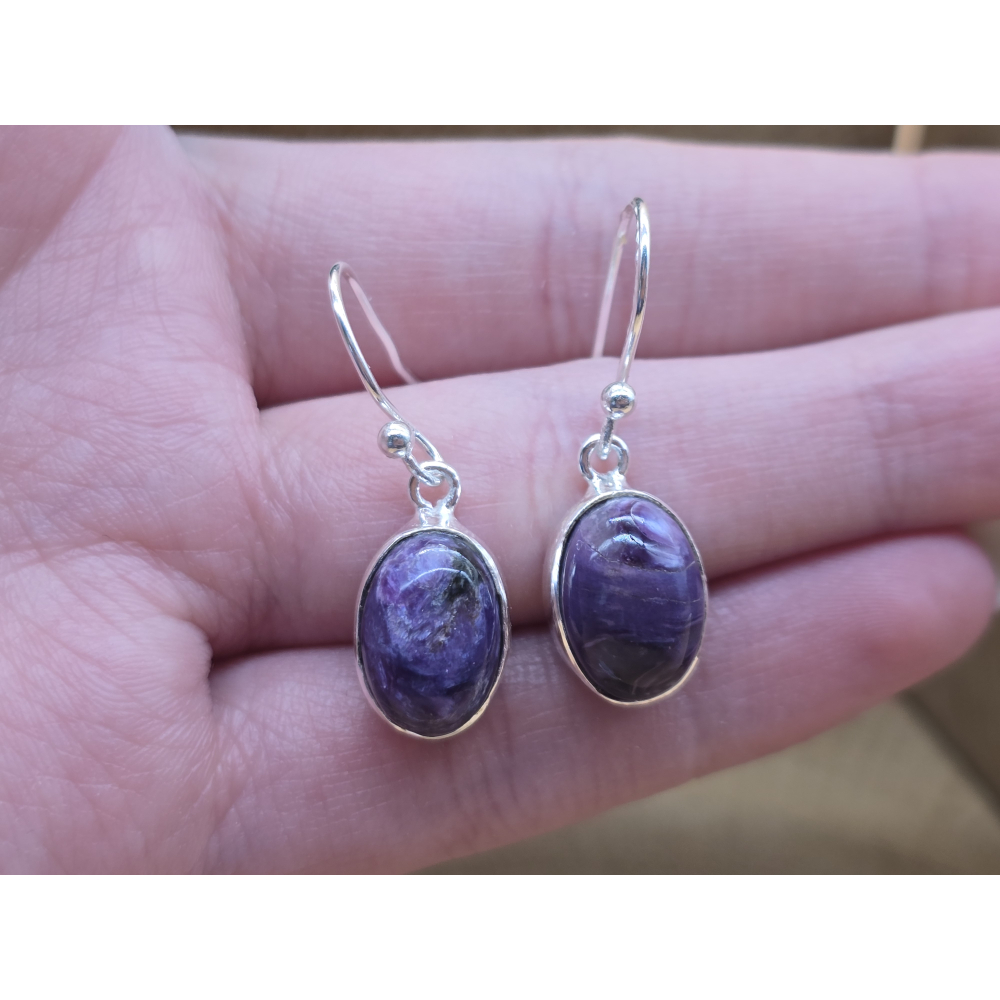 Prachtige oorbellen met Charoite.