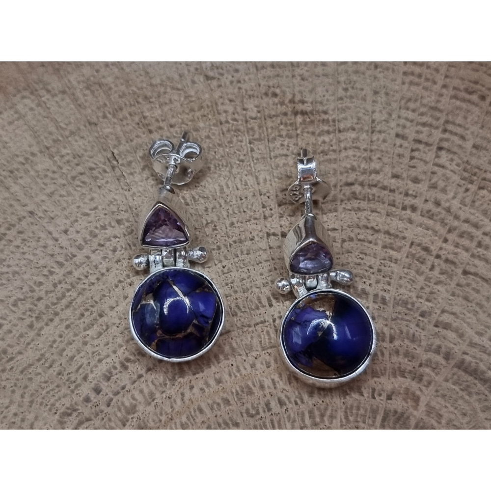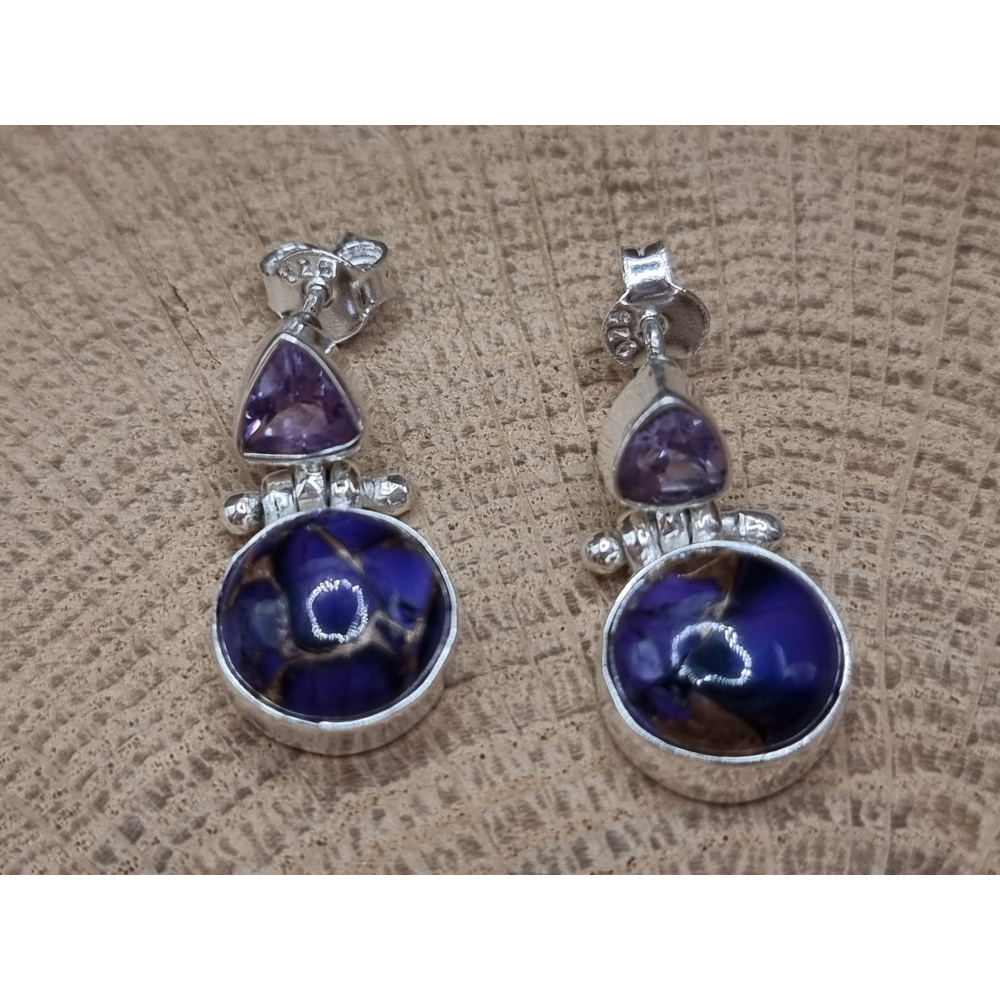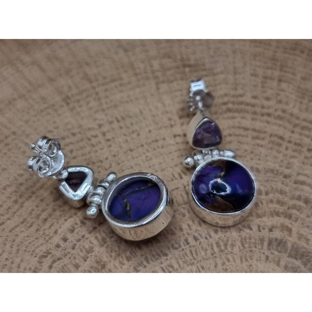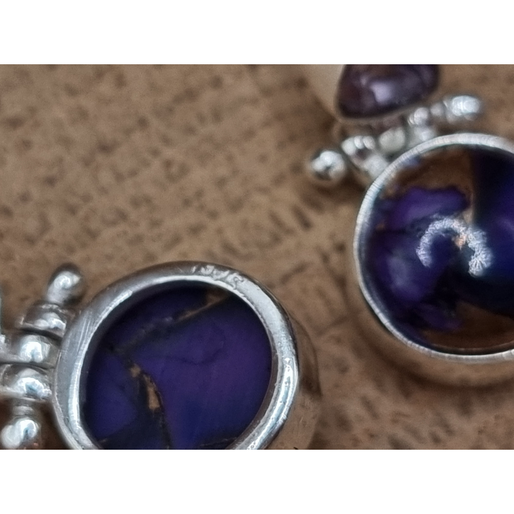 Echt zilveren oorbellen met paarse koper turkoois