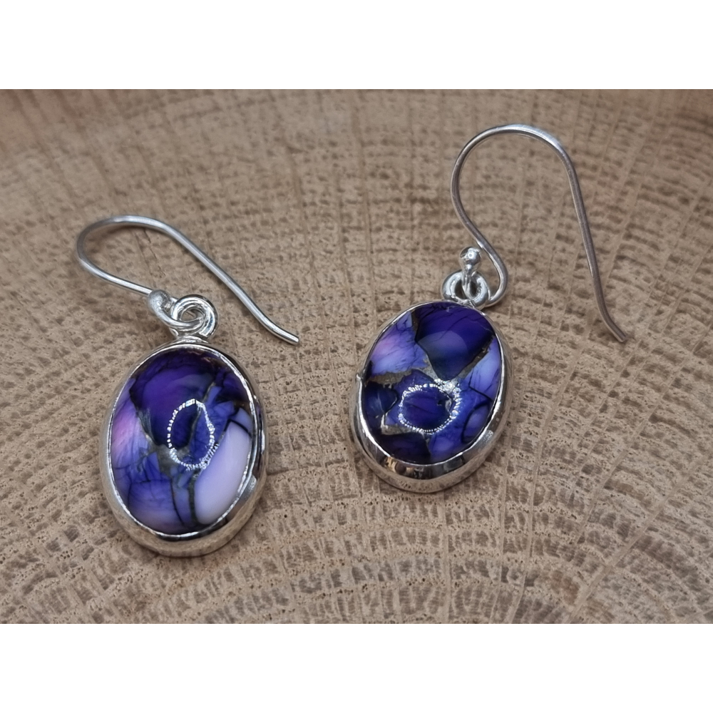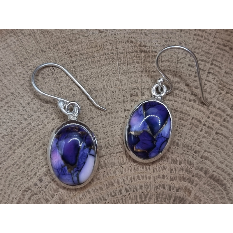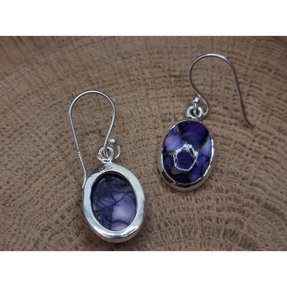 Echt zilveren oorbellen met Paarse koperen turkoois