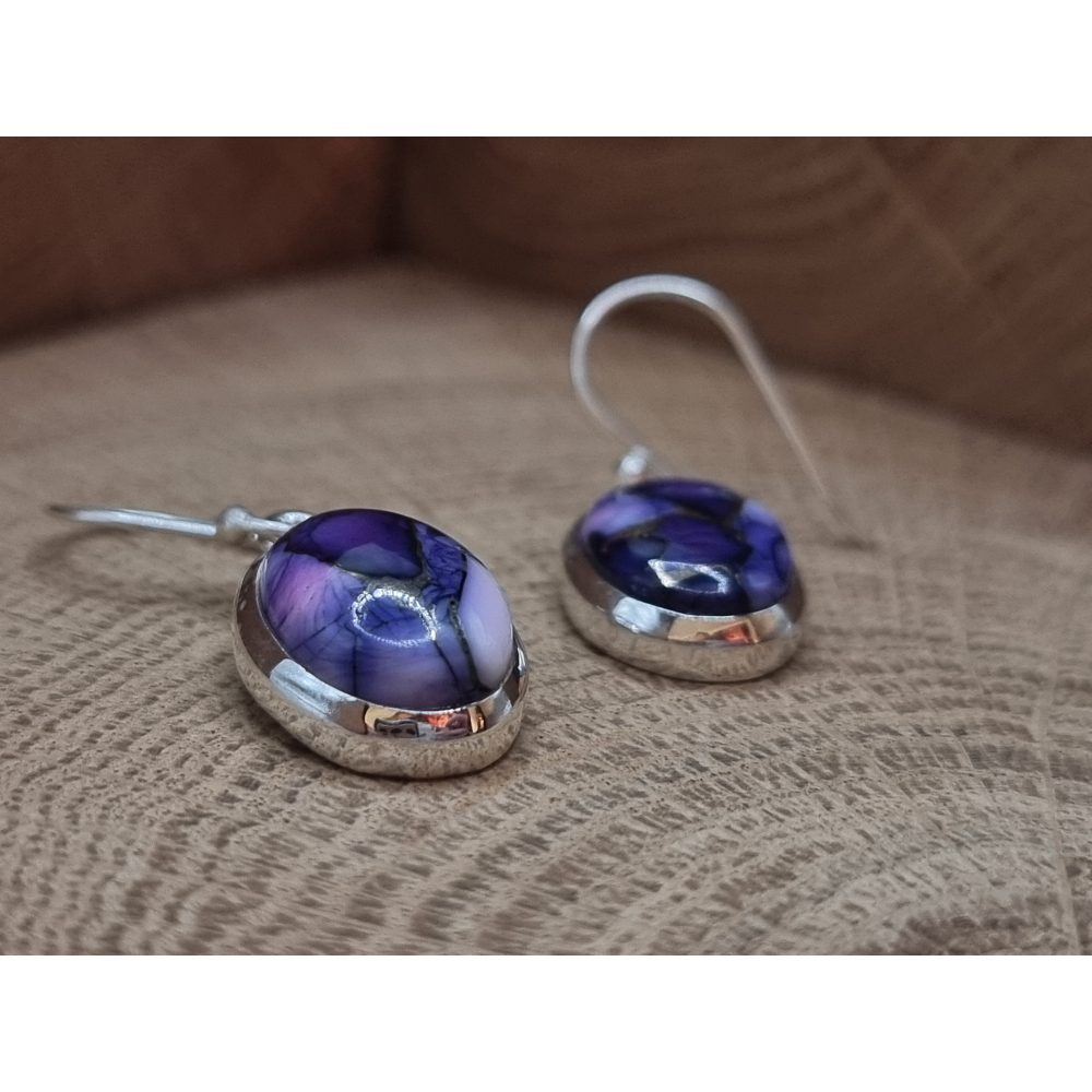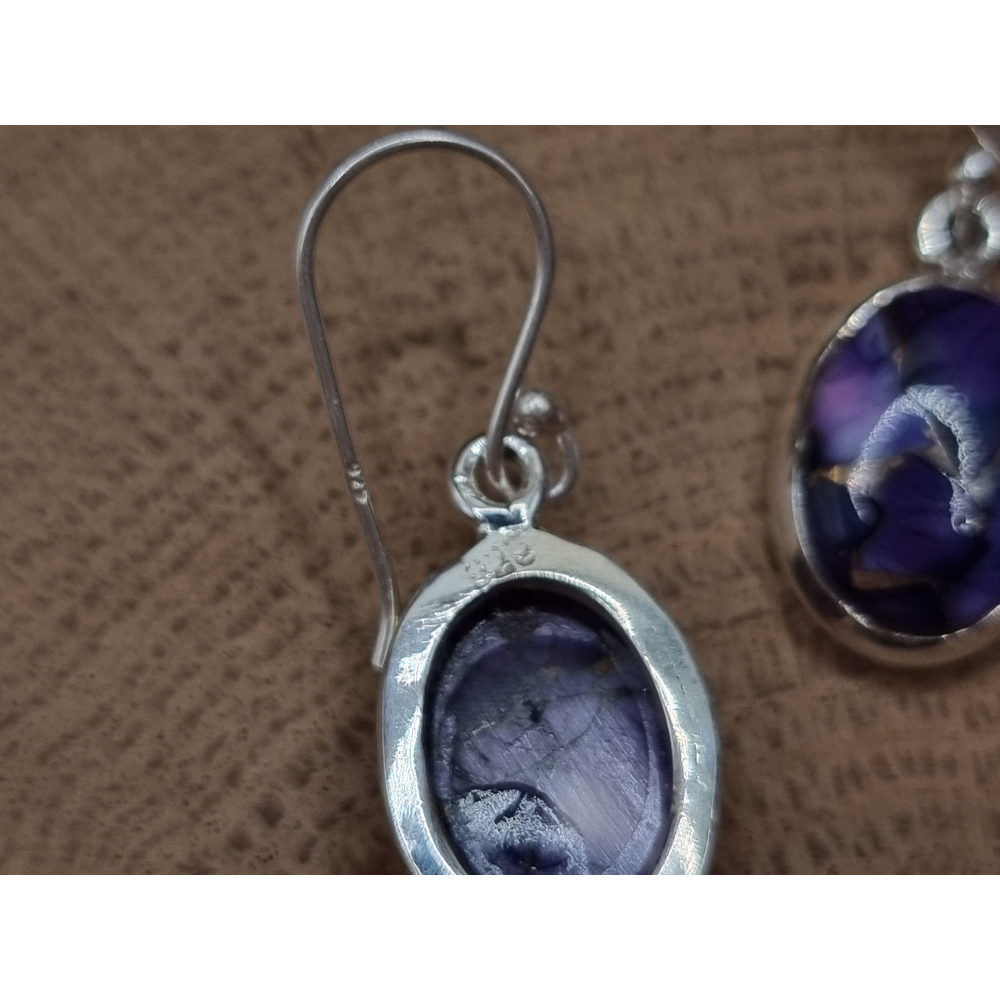 Prachtige echt zilveren oorbellen met paarse kopper turkoois