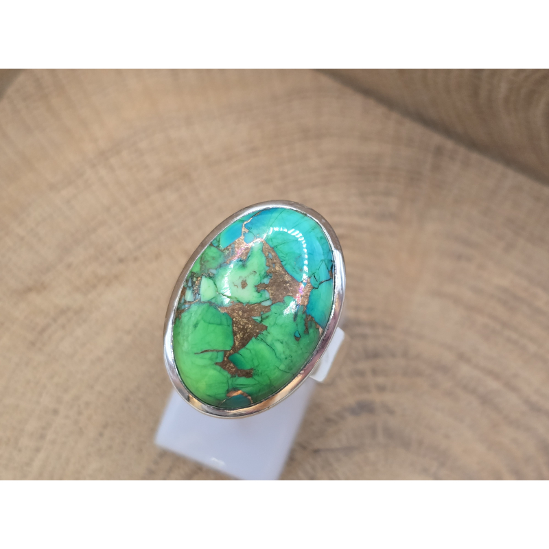 Prachtige echt zilveren ring met Groene Koper Turquoise