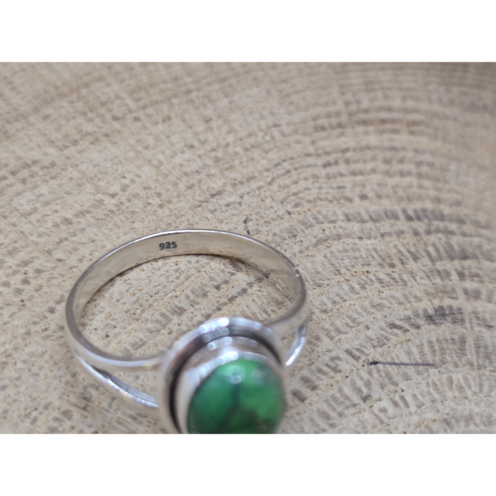 Prachtige echt zilveren ring met Groene Koper Turquoise