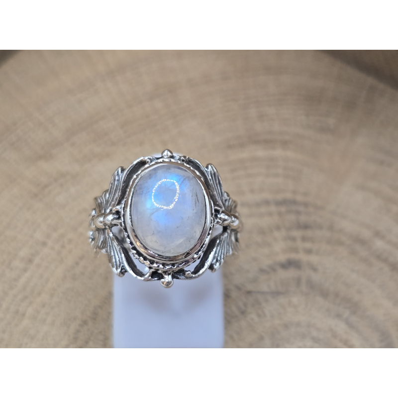 Prachtige echt zilveren ring met maansteen en vlinder band